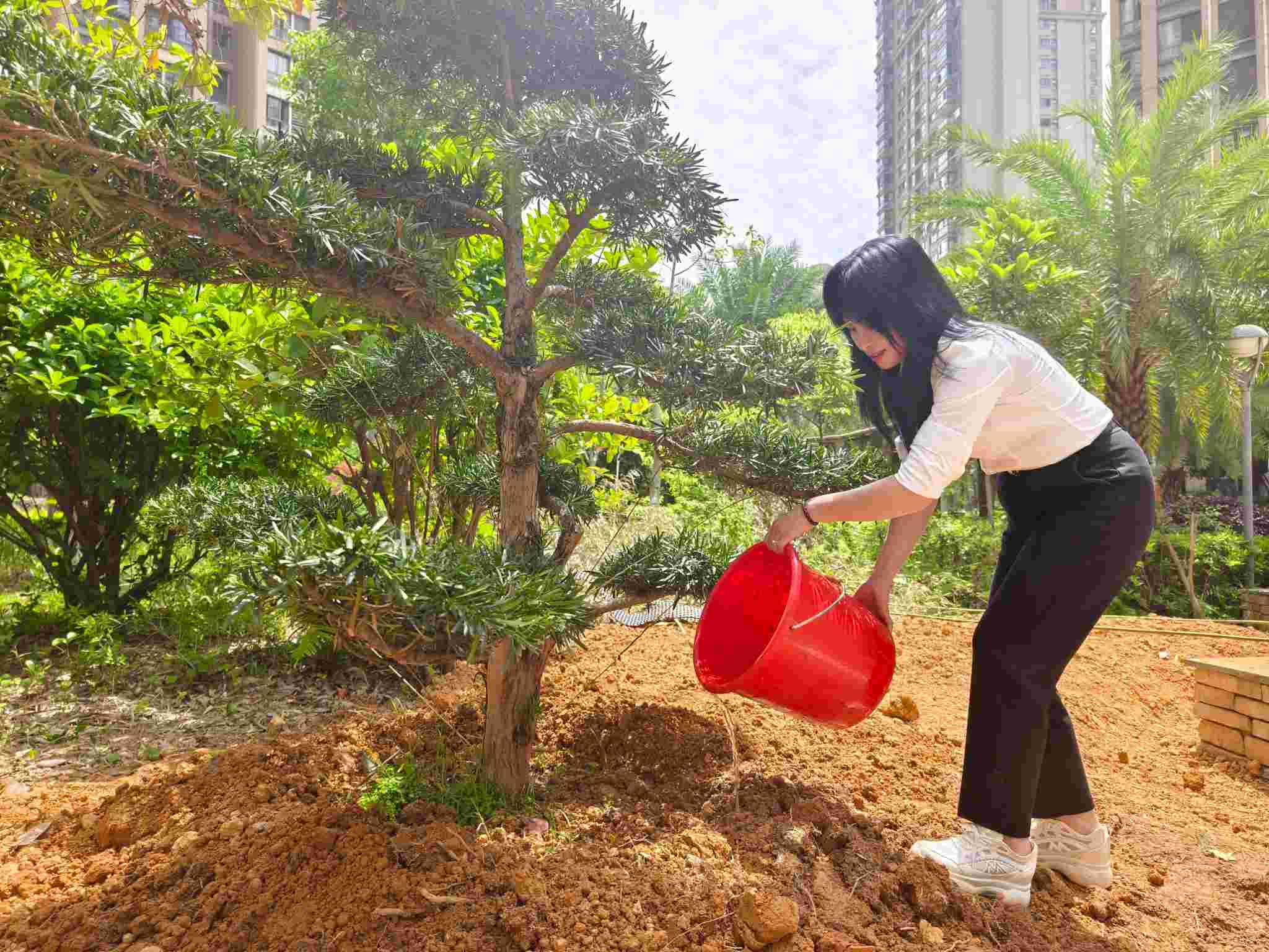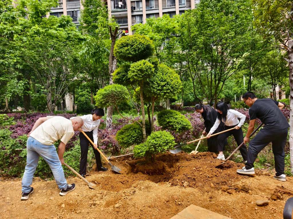 在園區的沃土上,正用鐵鍬與汗水譜寫一曲春天的交響。栽下一棵造型金葉女貞樹,埋進對物業服務初心的堅守;扶正一棵造型羅漢松樹,托起對生態文明的承諾。濕潤的泥土裹著青草香,在交錯的掌紋間傳遞著生命的溫度。我們將根系深埋,用服務作養料,以愛心化春雨。