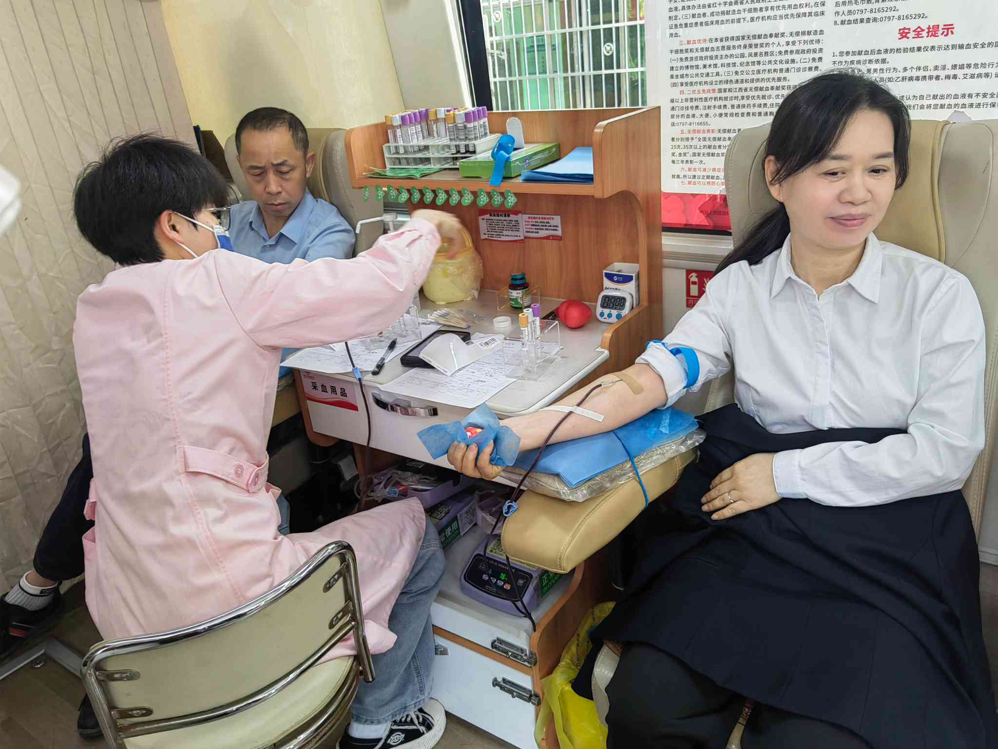 獻出一點愛心,挽救無數生命。愛心是生命的曙光,無償獻血傳遞了這份曙光的橋梁。弘揚救死扶傷的人道主義精神與“奉獻、友愛、互助、進步”的志愿精神,物業服務中心黨員群眾踴躍帶頭參與。獻血活動現場暖意融融,秩序井然,大家自覺排隊,填表、體檢,相互鼓勵交流。在醫護人員的指導下,依次進行了信息登記、血液類型檢驗、靜脈采血等環節。