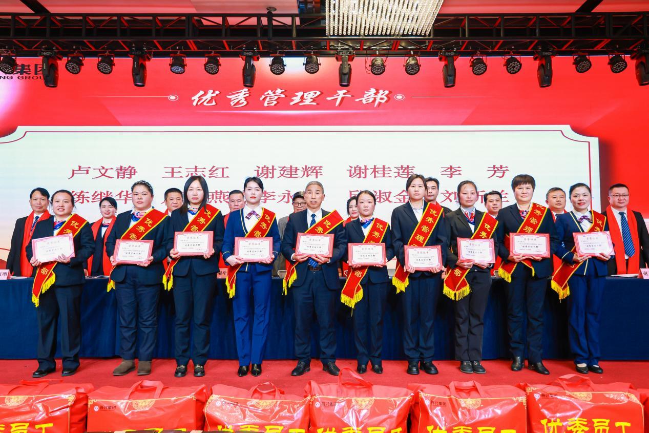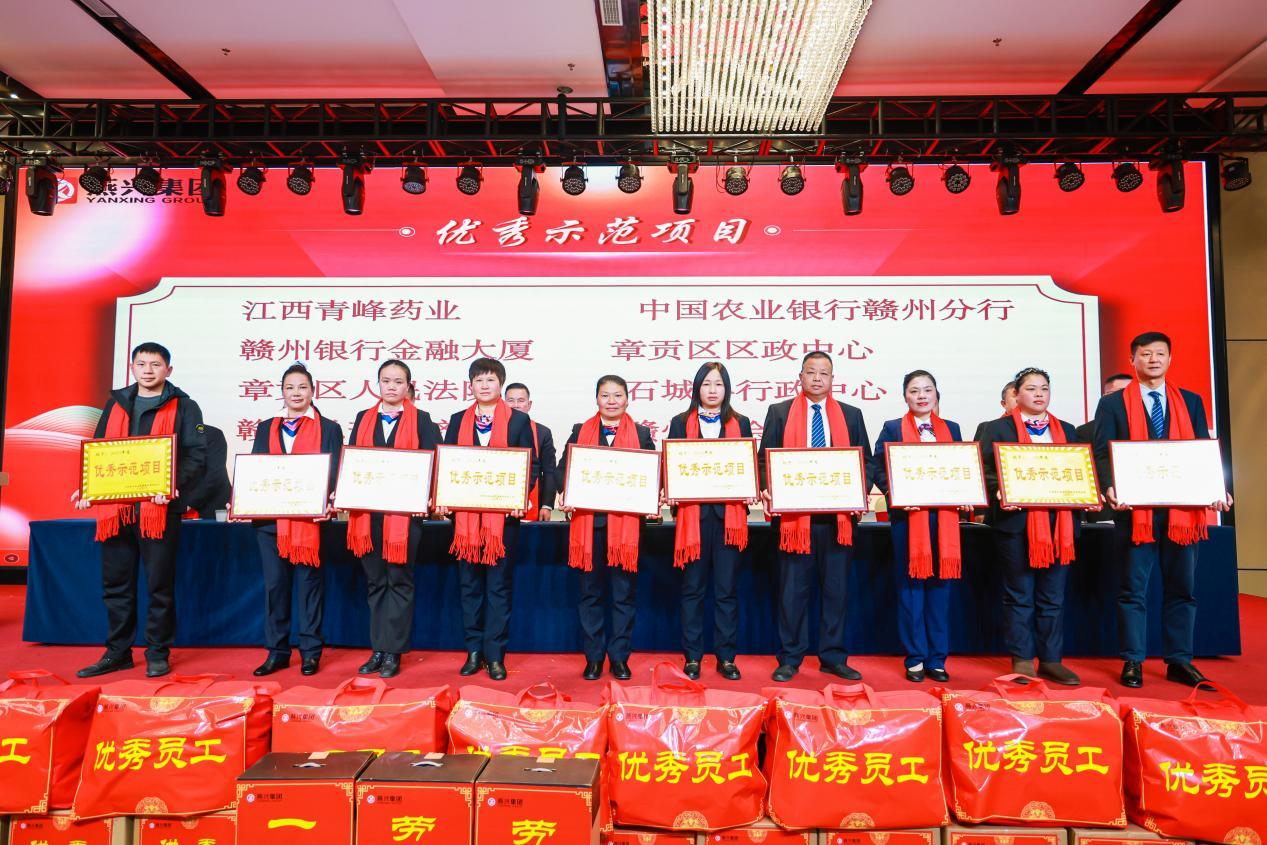 表彰環節高潮迭起,集團常務副總經理徐桂香宣讀《關于表彰2025年度先進集體和優秀個人的決定》。現場先后頒發業務標桿獎、優秀分公司獎、優秀示范項目獎、紅色物業小區獎、智慧物業先鋒項目獎等集體獎項,以及勞動模范獎、市場業績突出獎、優秀管理干部獎、優秀員工獎等個人獎項。南昌分公司、九江市分公司等先進集體,肖忠良、徐理文等勞動模范,閔紅明等市場業績突出個人,以及盧文靜等優秀管理干部、邱迎露等優秀員工依次登臺領獎,領導嘉賓為獲獎者頒發榮譽證書、獎杯與獎品,現場掌聲雷動,致敬每一位實干擔當的燕興奮斗者。