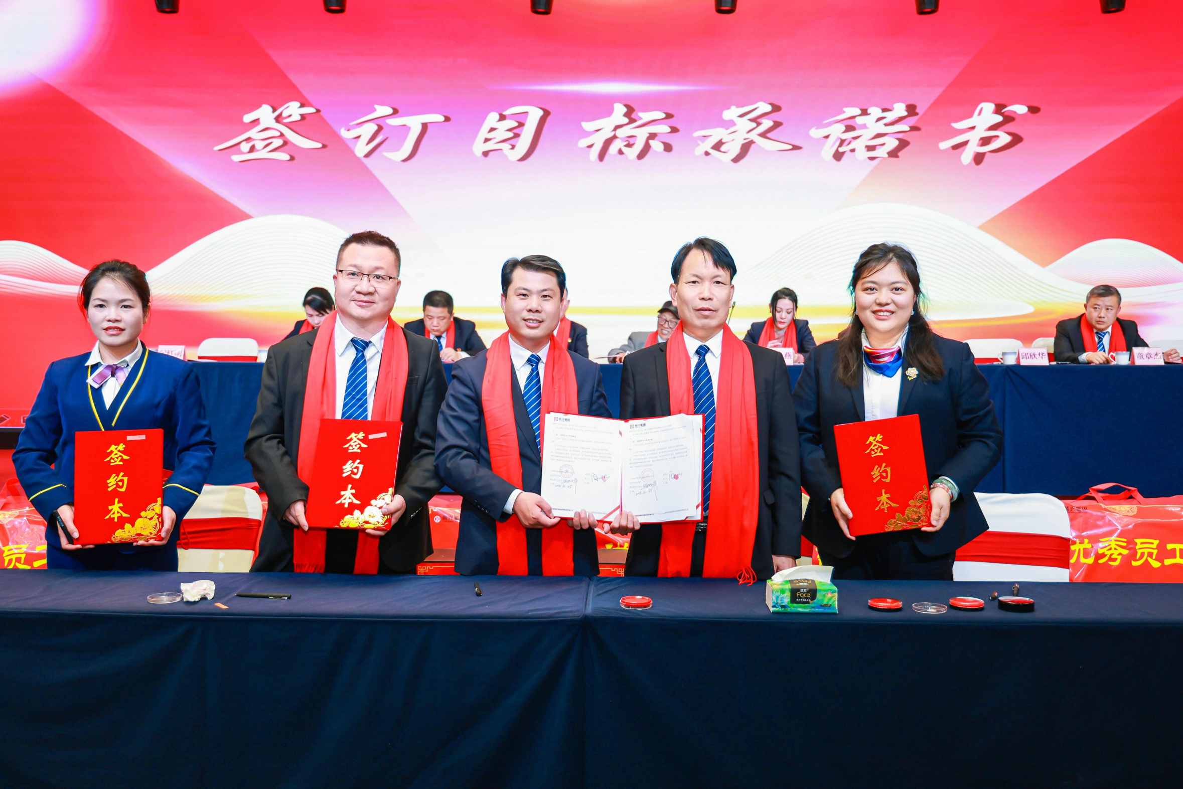 為確保2026年戰略目標落地,大會舉行目標責任書簽訂儀式。集團董事長劉燕與總經理邱欣華率先簽約,隨后總經理邱欣華分別與市場拓展部負責人、全國各地分公司負責人逐一簽訂目標責任書,以責任傳導凝聚發展合力,奏響實干攻堅的奮進號角。