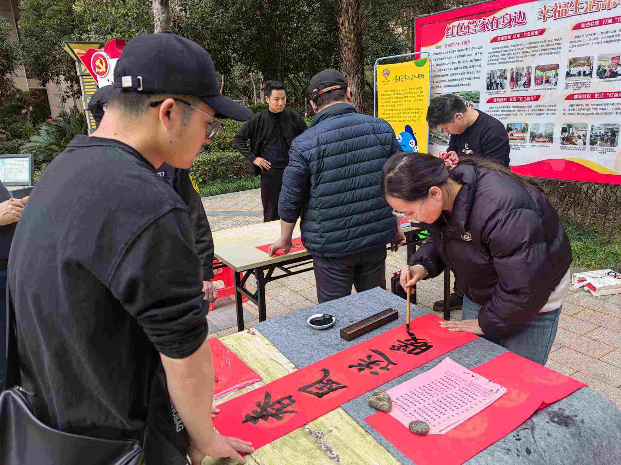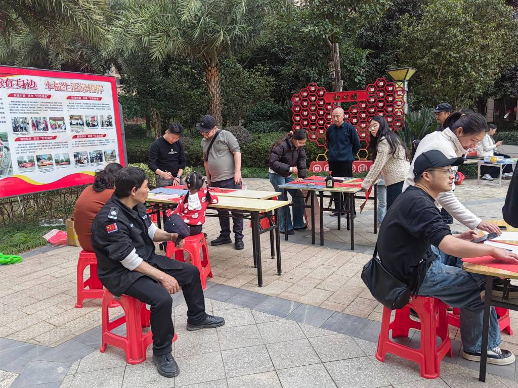 現(xiàn)場氛圍熱烈喜慶,濃濃的墨香裹挾著新春的暖意,感染著每一位到場居民,大家爭相挑選心儀的春聯(lián),迫不及待地想要把這份誠意滿滿的新春祝福帶回家。這一副幅紅彤彤的春聯(lián),不僅是一份份新春祝福,更承載著中華民族深厚的文化底蘊(yùn),既讓居民感受到了書法藝術(shù)的獨(dú)特魅力,豐富了居民的精神文化生活,也進(jìn)一步營造了積極健康、喜慶祥和、文明向上的小區(qū)文化氛圍,讓年味在筆墨書香中愈發(fā)濃厚。